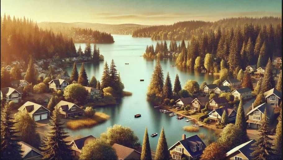 Fairview, Oregon, featuring its serene lake and surrounding natural beauty.